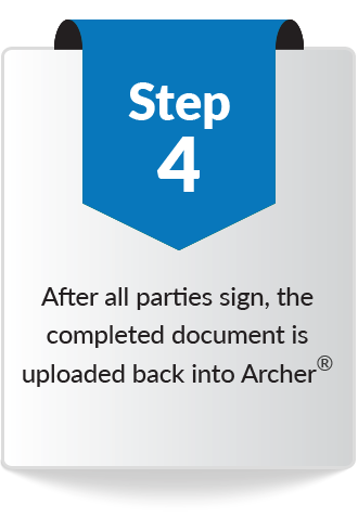 For organizations seeking to embed e-Sign capabilities in any part of their Archer® business processes, SignArcher is an easy way to facilitate electronic exchange of contracts, authorization forms and signed documents. With our proprietary solution, your team can now make gathering of signatures a simple and efficient process.
